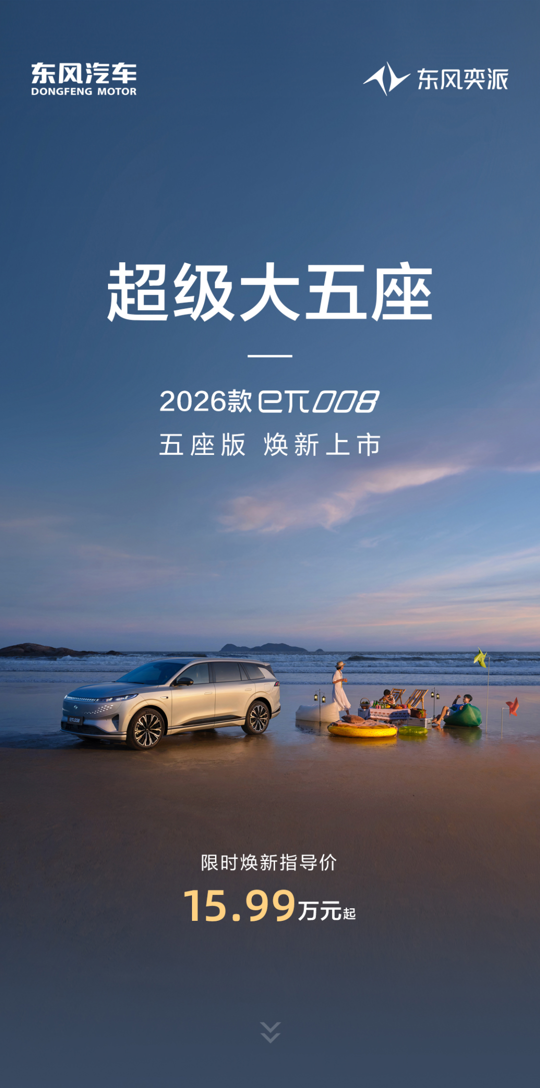 超级大五座2026款eπ008五座版正式上市!限时焕新指导价15.99万元起